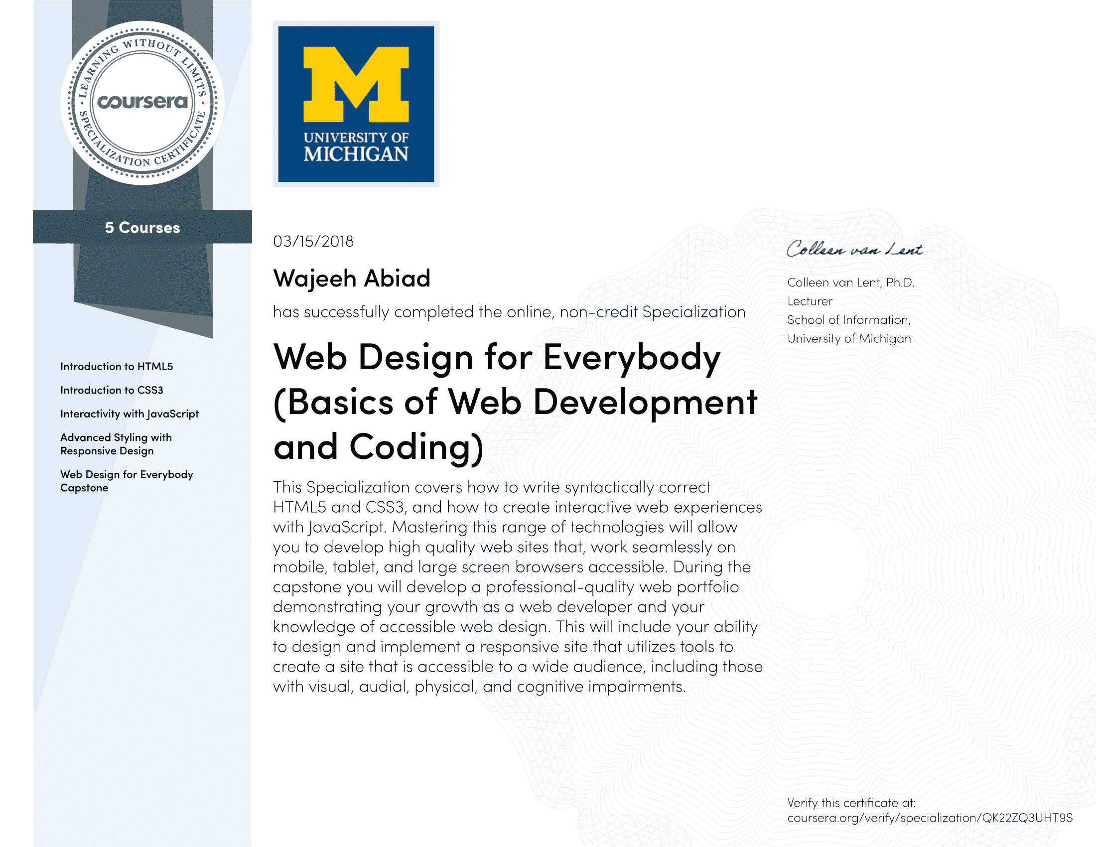 Although I have done many classes and online courses in the English language, and writing code using a variety of programming languages, my full concentrating was drawn to web development, trying to be up to date with the most recent technologies
